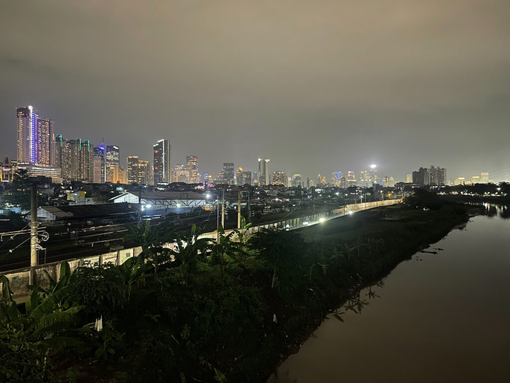 Il est quatre heures du matin lorsque nous arrivons à Jakarta, mégalopole de 32 millions d’habitants. Heureusement, la nuit nous empêche de voir dans quel état sont les quartiers nord (les plus pauvres) de cette formidable fourmilière qui s’enfonce inexorablement sous le poids de ses habitants et de leur consommation en eau largement pompée des nappes phréatiques… Plus de la moitié de la ville serait d’ores et déjà sous le niveau de la mer!