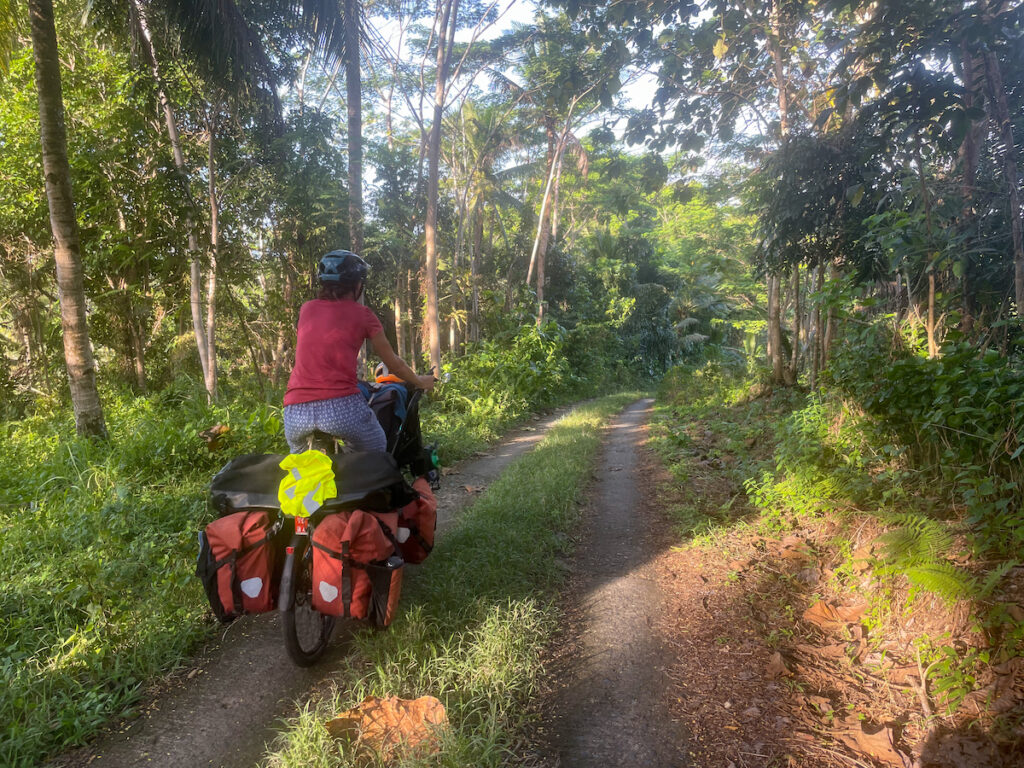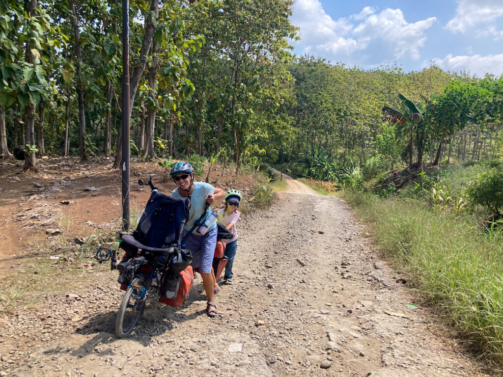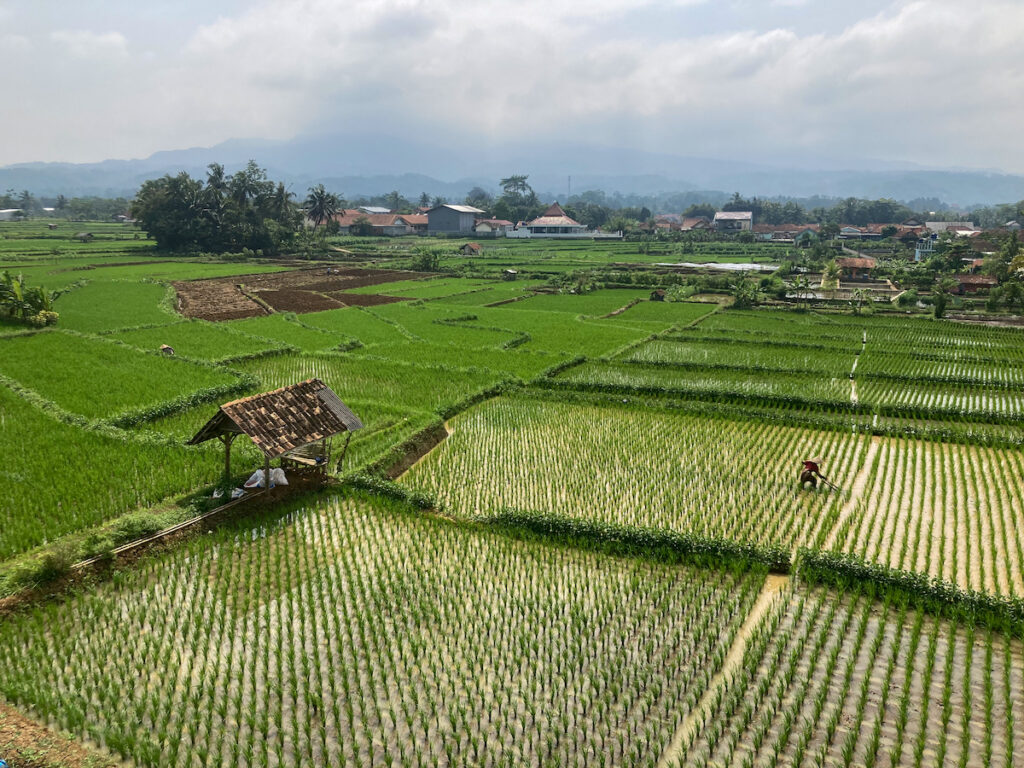 La campagne y est belle et très diversifiée. Ici, c’est du riz, là du manioc ou du maïs. Après la monoculture du palmier à huile en Malaisie et l’omniprésence du béton dans les villes qui ont suivi, ça nous fait un bien fou de traverser une région verdoyante et aux habitants attachants.