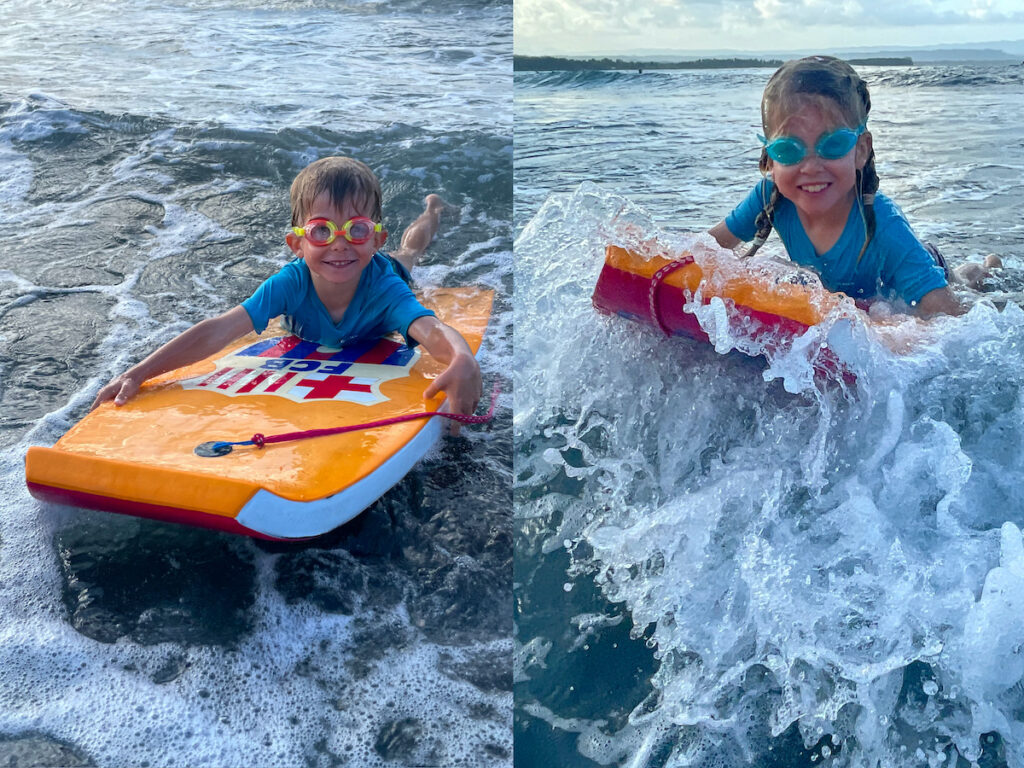 Et après quelques jours d’entrainement intensif, le verdict est sans appel: Émilie et Antoine finiront sur la planche, leurs parents resteront dessous et notre téléphone ne sait pas nager…
