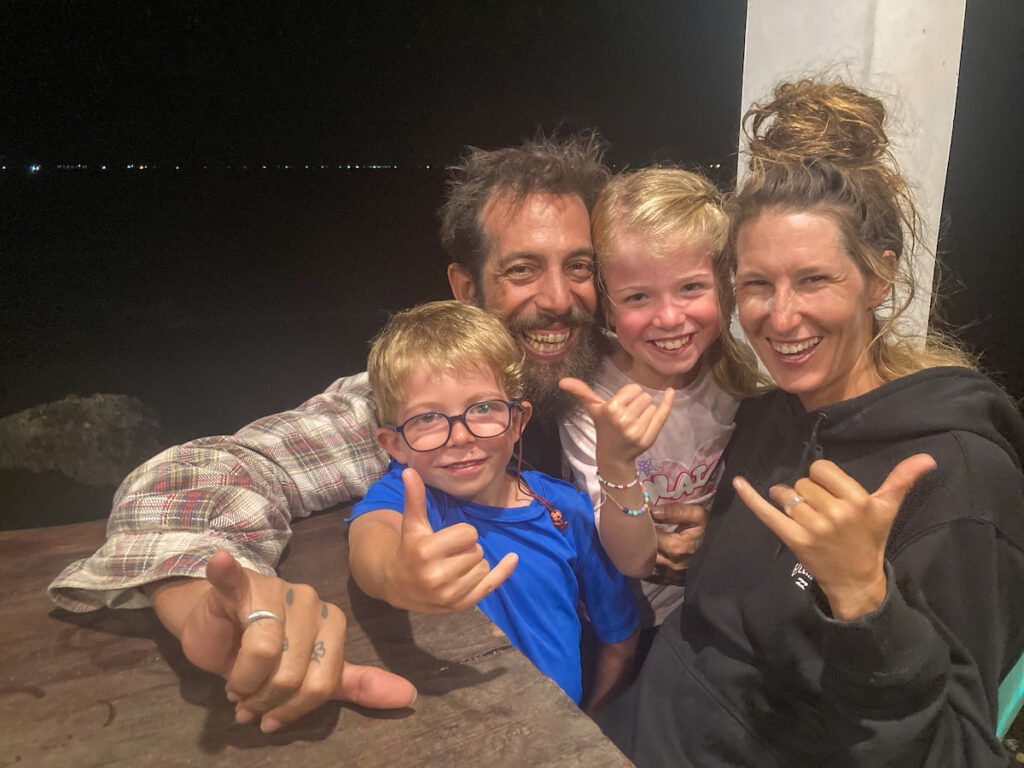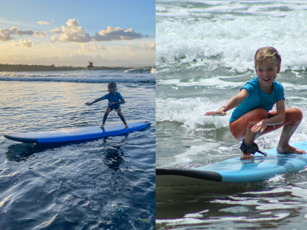 Nous ne pensions que passer par Batukaras, spot de surf bien connu des amateurs de glisse aquatique. Finalement, nous y resterons près d’une semaine, tant Émilie, Antoine et leurs parents ont eu du plaisir à essayer d’apprivoiser les vagues longues et régulières qui s’écrasent depuis la nuit des temps dans une baie de sable blond.