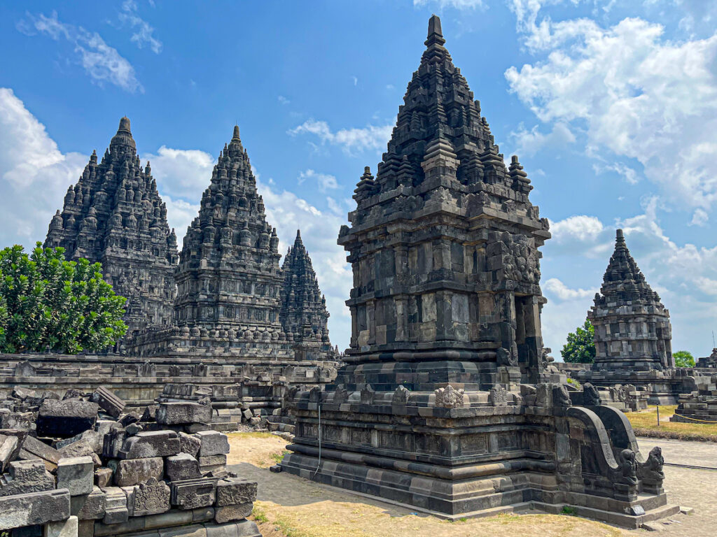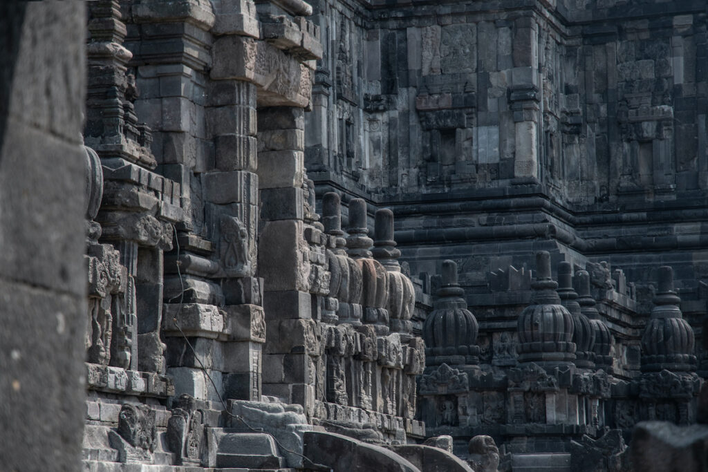 Un peu plus loin, d’autres vestiges nous attendent, hindous cette fois. Construits à la même époque que Borobudur, les temples de Prambanan sont la demeure des dieux, dont Brahma (le créateur), Vishnu (le protecteur) et Shiva (le destructeur).