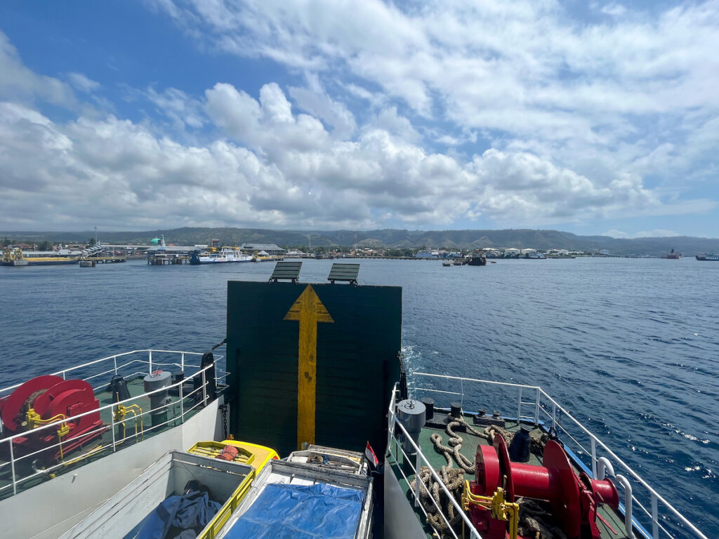 La traversée aurait dû durer trente heures, elle en fera finalement six de plus. Heureusement, la mer est calme et nous sommes confortablement installés dans une cabine de quatre lits alors que la grande majorité des passagers dorment à même le sol ou dans des dortoirs à la salubrité discutable…