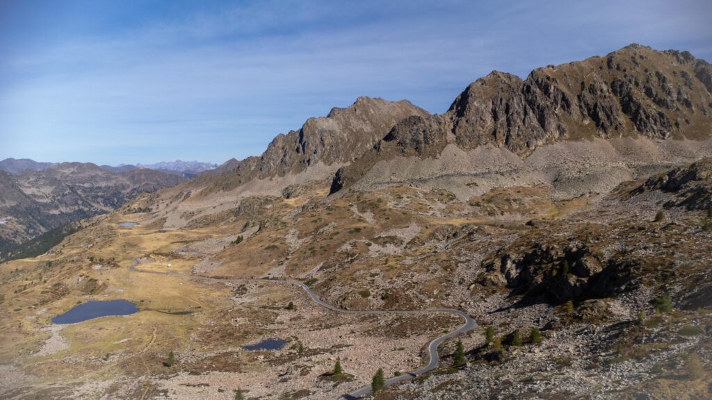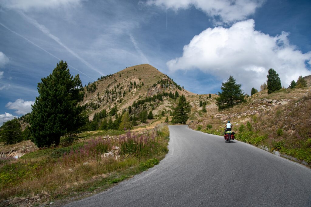 Après une nuit à 3°C à Isola 2000, station de ski à l’architecture déplorable, les derniers coups de pédales se font dans un décors minéral majestueux. Seuls les motards, sur leurs machines pétaradantes, viennent perturber nos pensées et les marmottes habitantes des lieux.